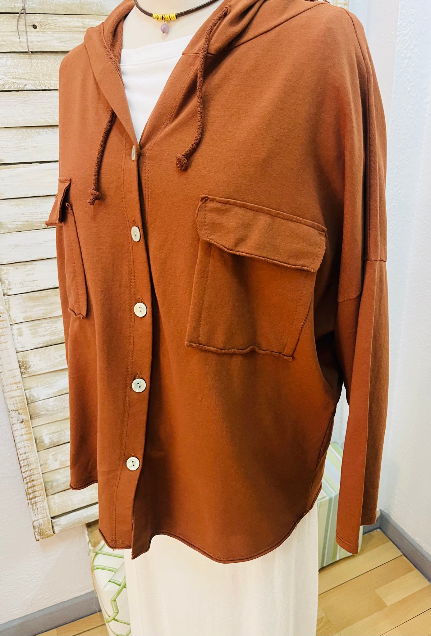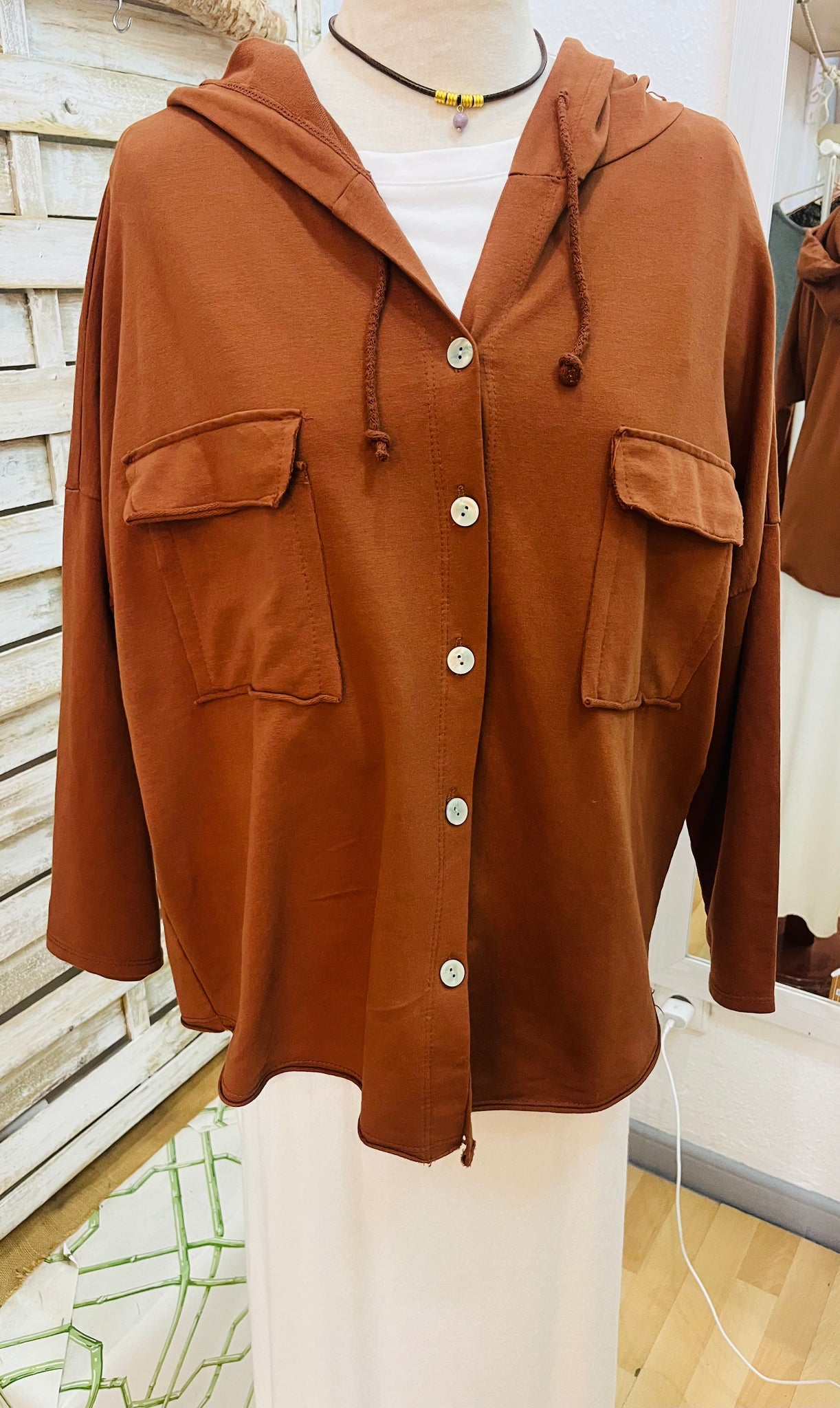 Tiene bolsillos y capucha. Muy práctica.