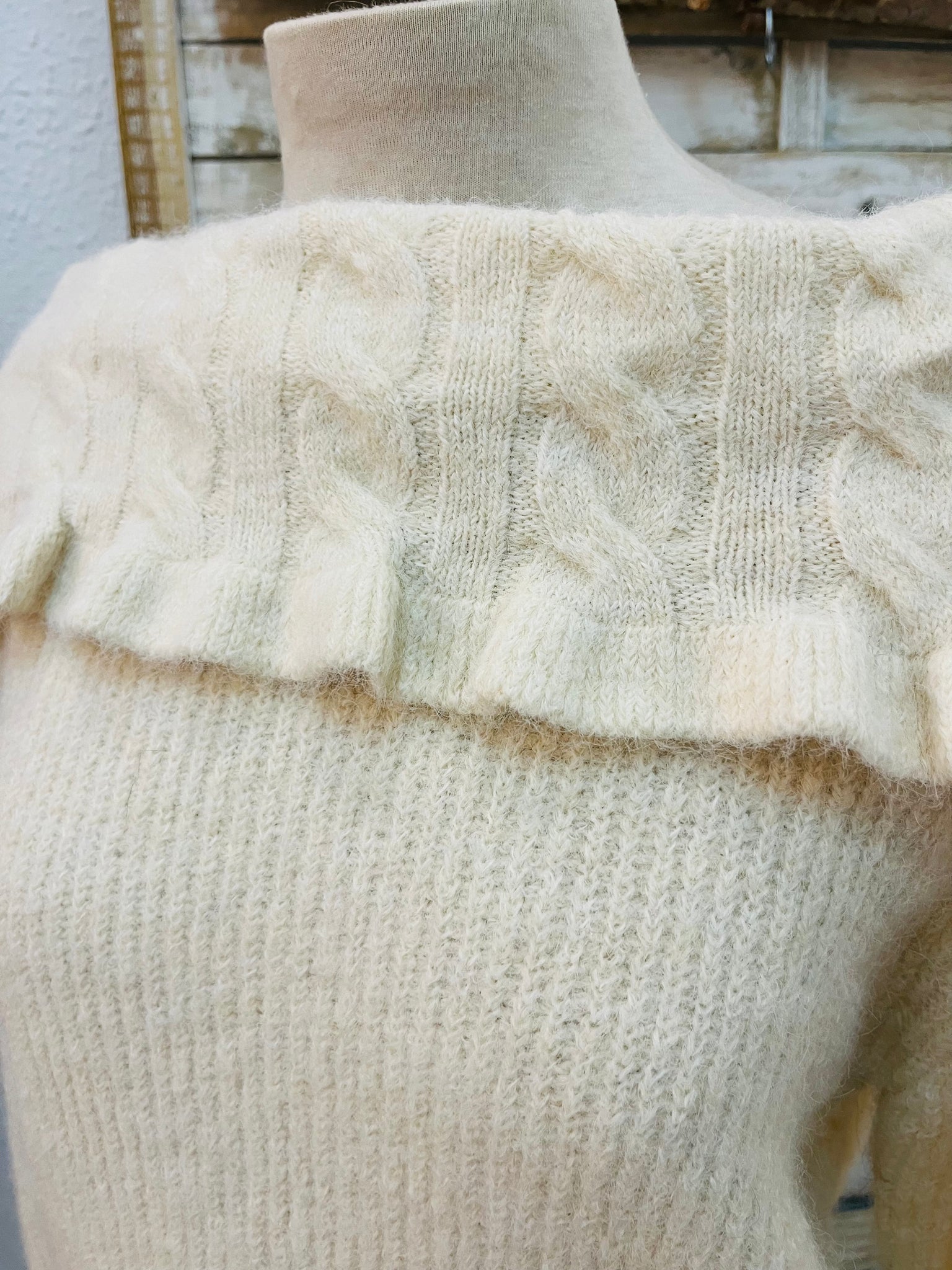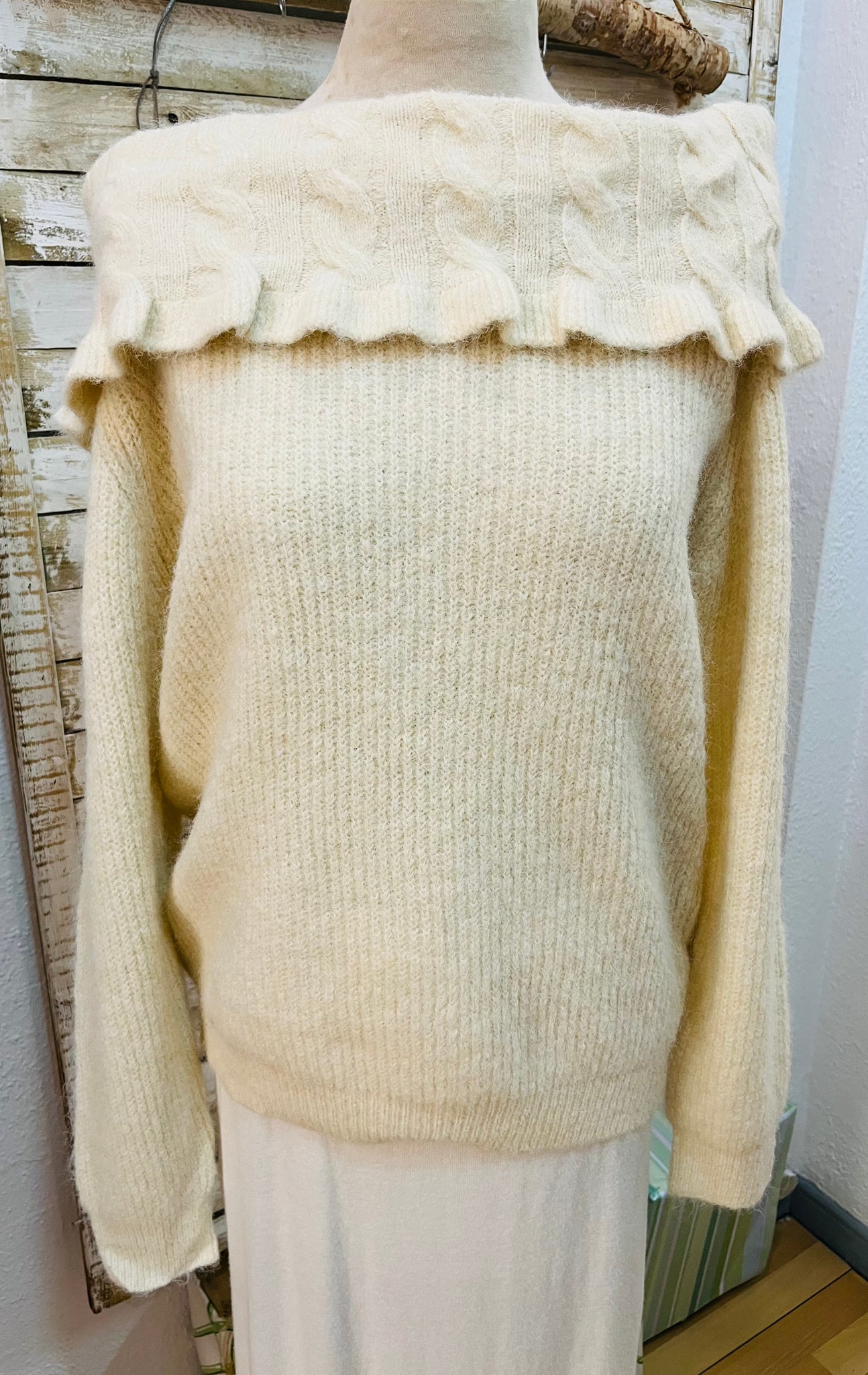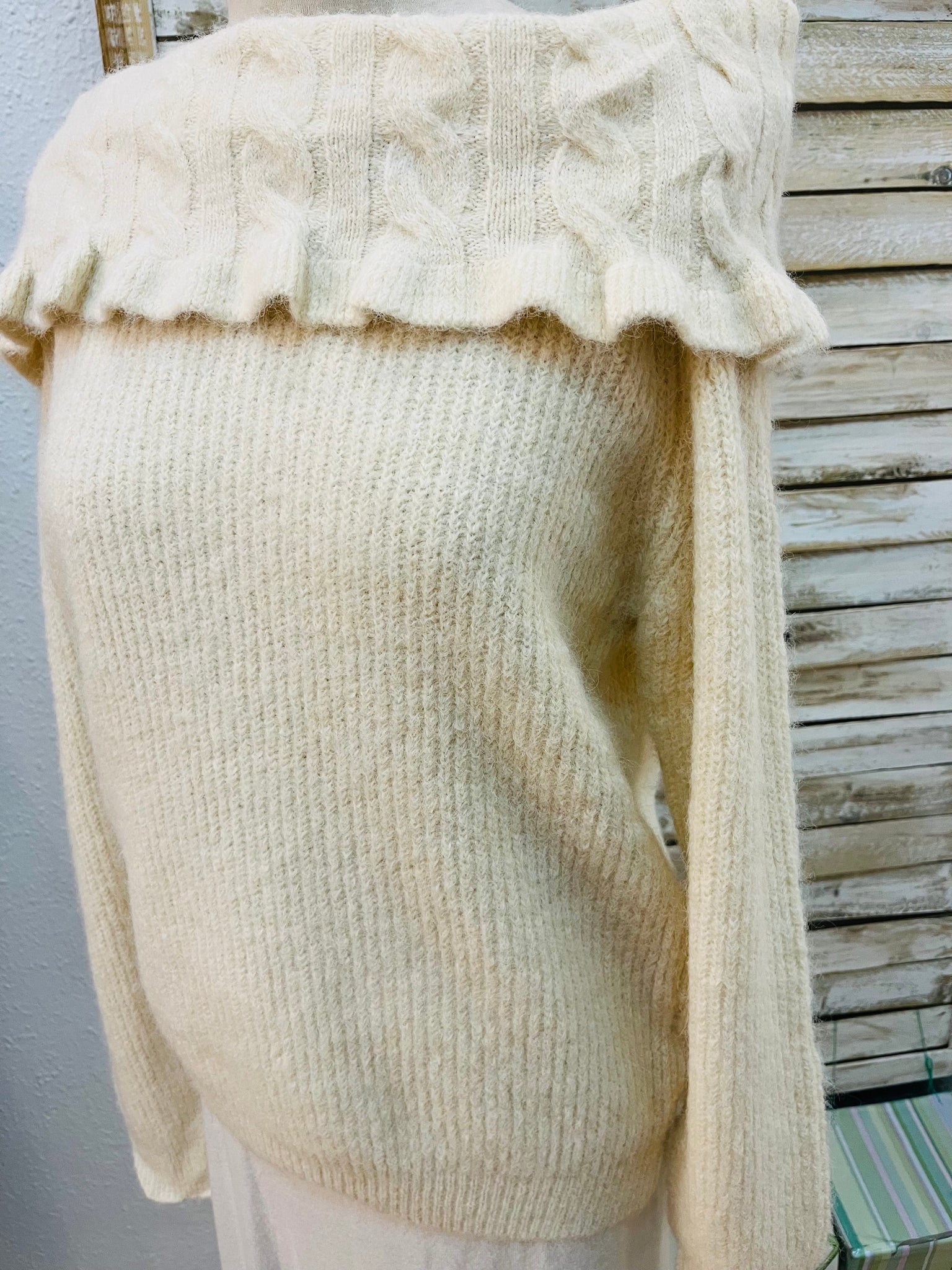 Jersey con cuello que permite llevar hombros descubiertos. Talla única